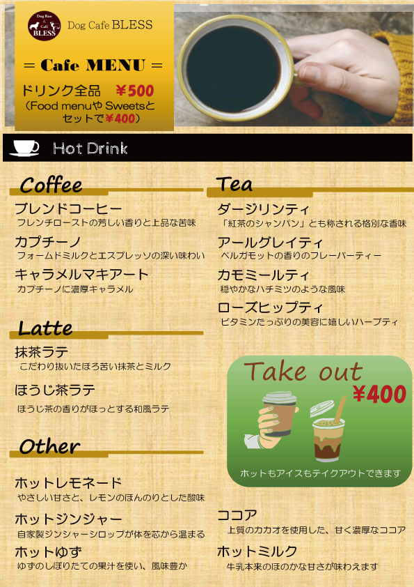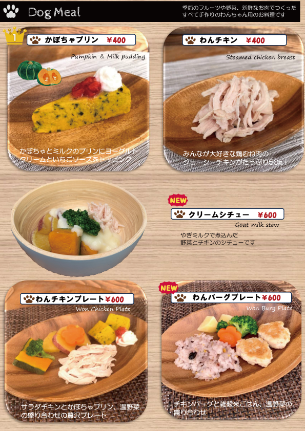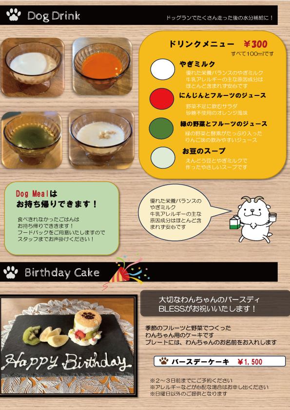 ※お席のご予約と、わんちゃんのバースディーは、平日のみのサービスとさせていただきます。